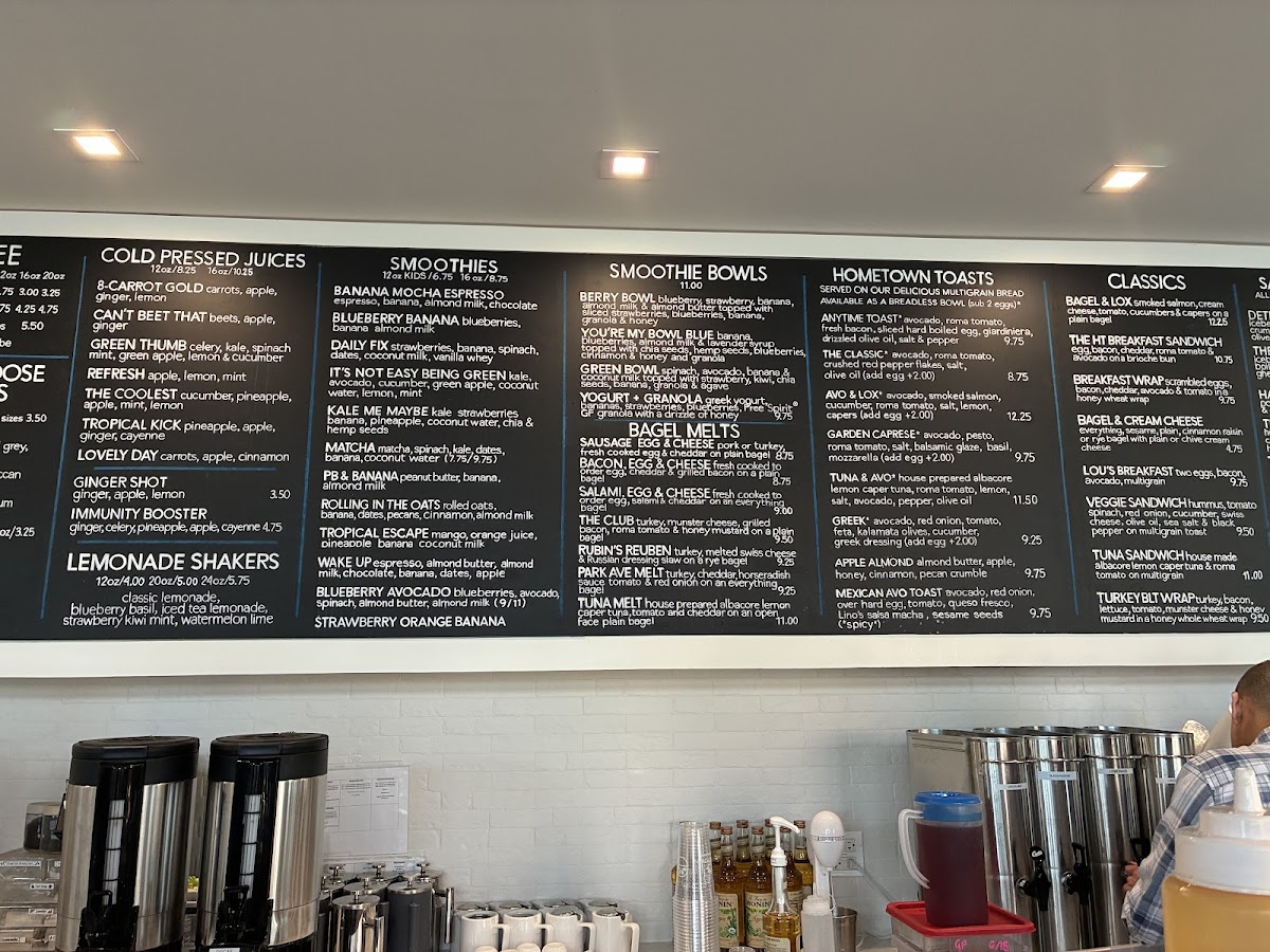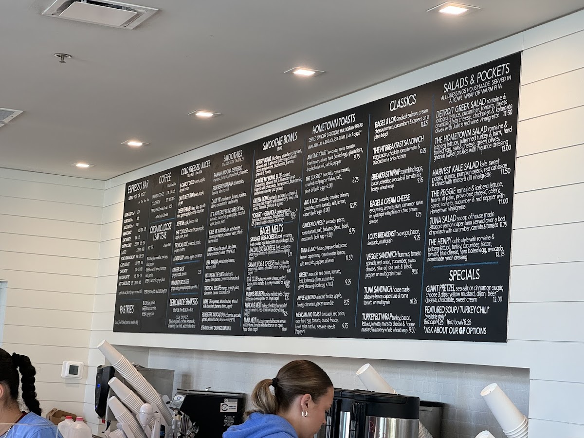 Breakfast and lunch options include a tempting selection of Bagel Melts, such as Salami, Egg & Cheese and Bacon, Egg & Cheese, while the Classics menu features favorites like the Bagel & Lox and Lou's Breakfast. The Hometown Toasts are perfect for those craving a quick bite, with offerings like the Avo & Lox and Garden Caprese. For a heartier meal, the Salads & Pockets menu includes the Detroit Greek Salad and The Hometown Salad.